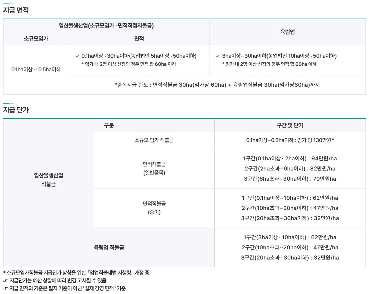 임업직불금 지원내용
